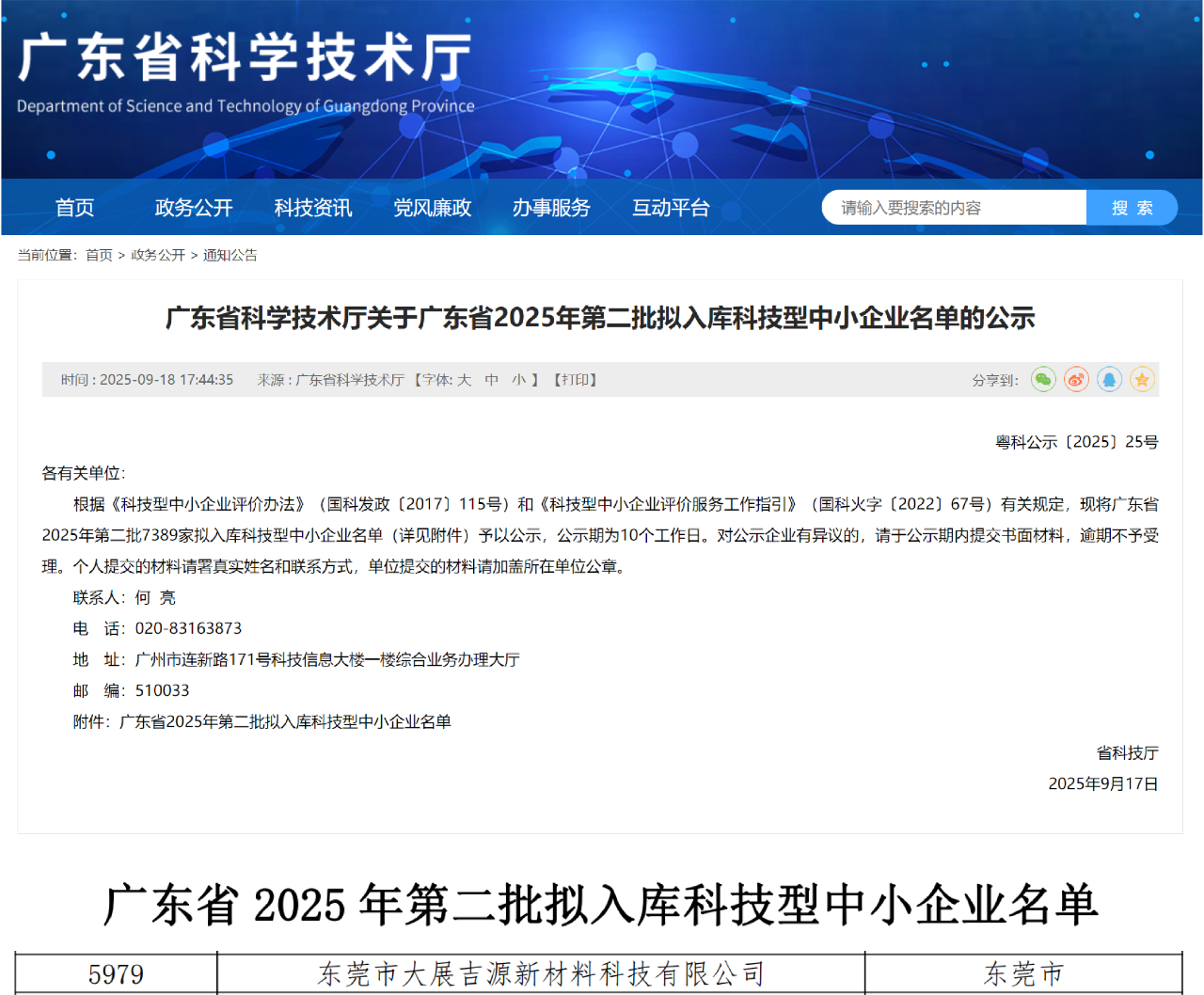 近日,广东省科学技术厅正式公示了“2025年第二批拟入库科技型中小企业名单”。大展吉源凭借扎实的研发实力、卓越的创新能力与良好的发展潜力,成功入选该权威名单!