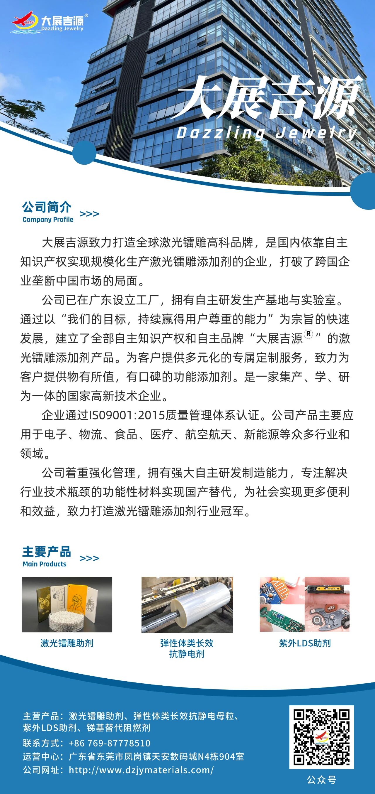大展吉源是一家集产、学、研为一体的国家高新技术企业,专注于激光镭雕添加剂等功能性新材料的研发、生产与销售,是国产替代浪潮中的领军企业。