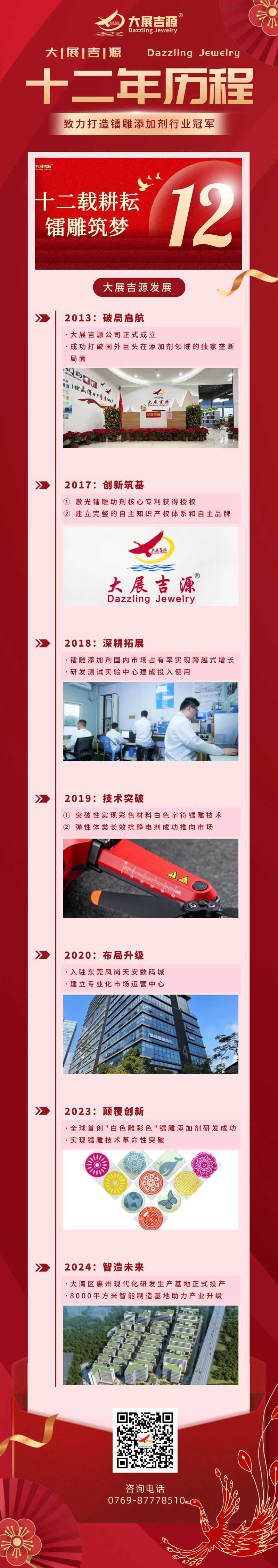 展望未来,我们以创新驱动发展:十二年是里程碑,更是新起点。大展吉源将继续以"自主创新"为引擎,秉持"专业、专注、共创、共赢"的价值观,致力于为全球客户提供更智能、更环保的功能材料解决方案,赋能更多行业实现技术升级。